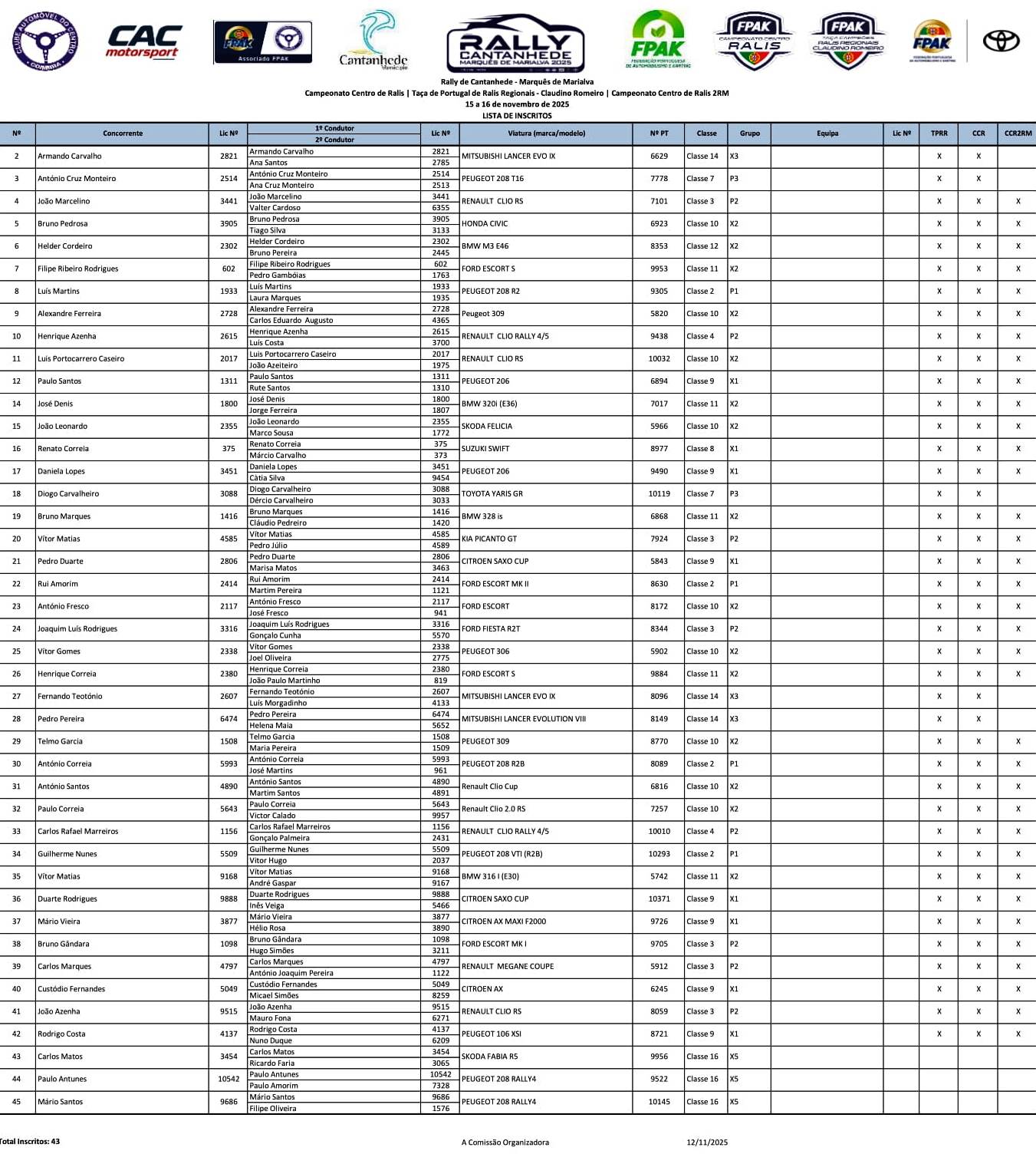 Lista de Inscritos + Aditamento N.º 5 + Aditamento N.º 4 + Aditamento N.º 3 + Aditamento N.º 2 + Aditamento N.º 1 + Regulamento Particular + Mapas de Controlos