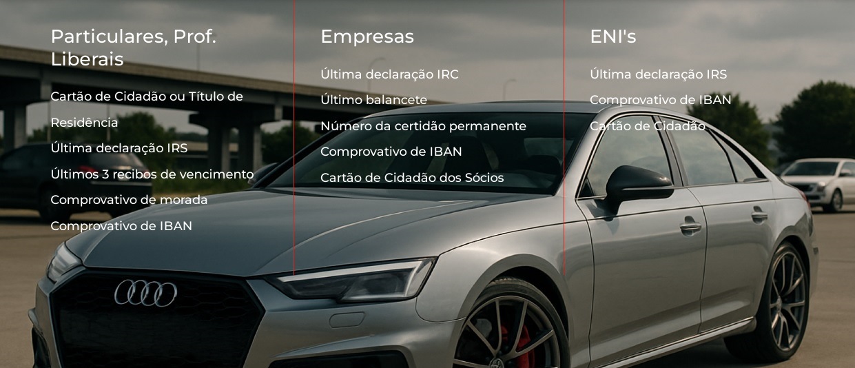 Somos Intermediários de Crédito certificados pelo Banco de Portugal. Solicite-nos a proposta de acordo com as condições que procura.